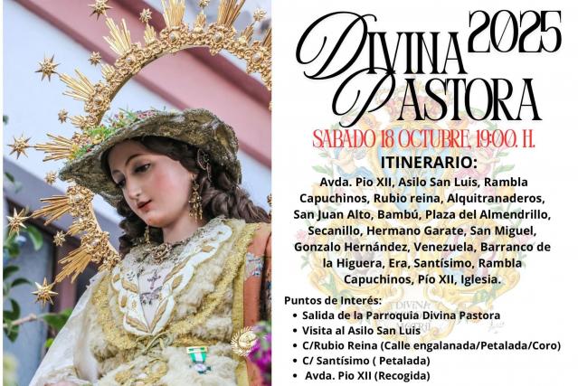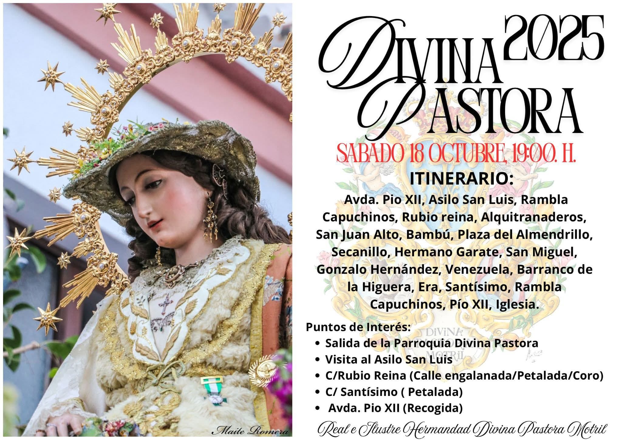 La Divina Pastora de Motril volverá a recorrer las calles del barrio de Capuchinos el próximo sábado 18 de octubre de 2025, en el marco de sus cultos anuales del mes de octubre. Desde su llegada a la ciudad en 1747, la imagen mariana se ha convertido en el centro devocional de todo un barrio.